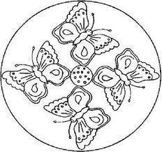 E o que vocês acham desta mandala decorada com quatro grandes borboletas? Outra boa opção de primavera para pintar.